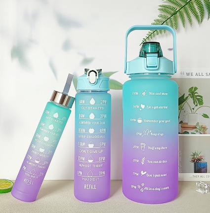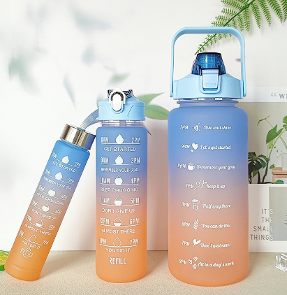 This package includes three motivational water bottles (64 oz, 32 oz, 10 oz). They feature easy-to-read capacity markers on the back. Track your daily water intake effortlessly and stay encouraged to drink enough water throughout the day.