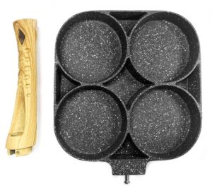 - 4-Cup Egg Frying Pan: The ultimate time-saver for your breakfast routine! Designed with four convenient holes, it’s perfect for making omelets, bacon, burgers, pancakes, and more, all at once. Cook your favorite meals faster and easier, saving time and energy in the kitchen.